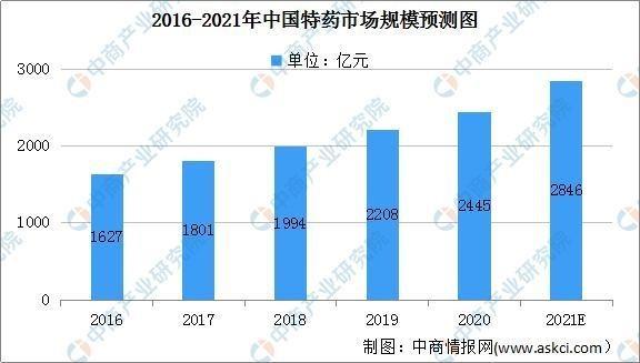 由于口径不一致,国内对专业药房市场规模的统计数据也千差万别。仅统计特药市场的话,近几年中国特药市场保持稳步增长,由2016年的1627亿元增加至2020年的2445亿元,复合年增长率为10.7%。预计2021年中国特药市场将进一步达到2846亿元,未来也将持续保持增长趋势。